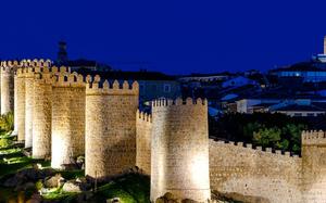 Lo más característico y conocido de Ávila es su muralla románica, que se conserva entera y en perfecto estado. El inicio de su construcción data de 1090. Encierra 31 hectáreas y tienes un perímetro de dos kilómetros y medio, y está sembrado de 87 torres semicirculares y nueve puertas. De noche, la muralla completa se ilumina sorprendiendo incluso al más escéptico visitante.